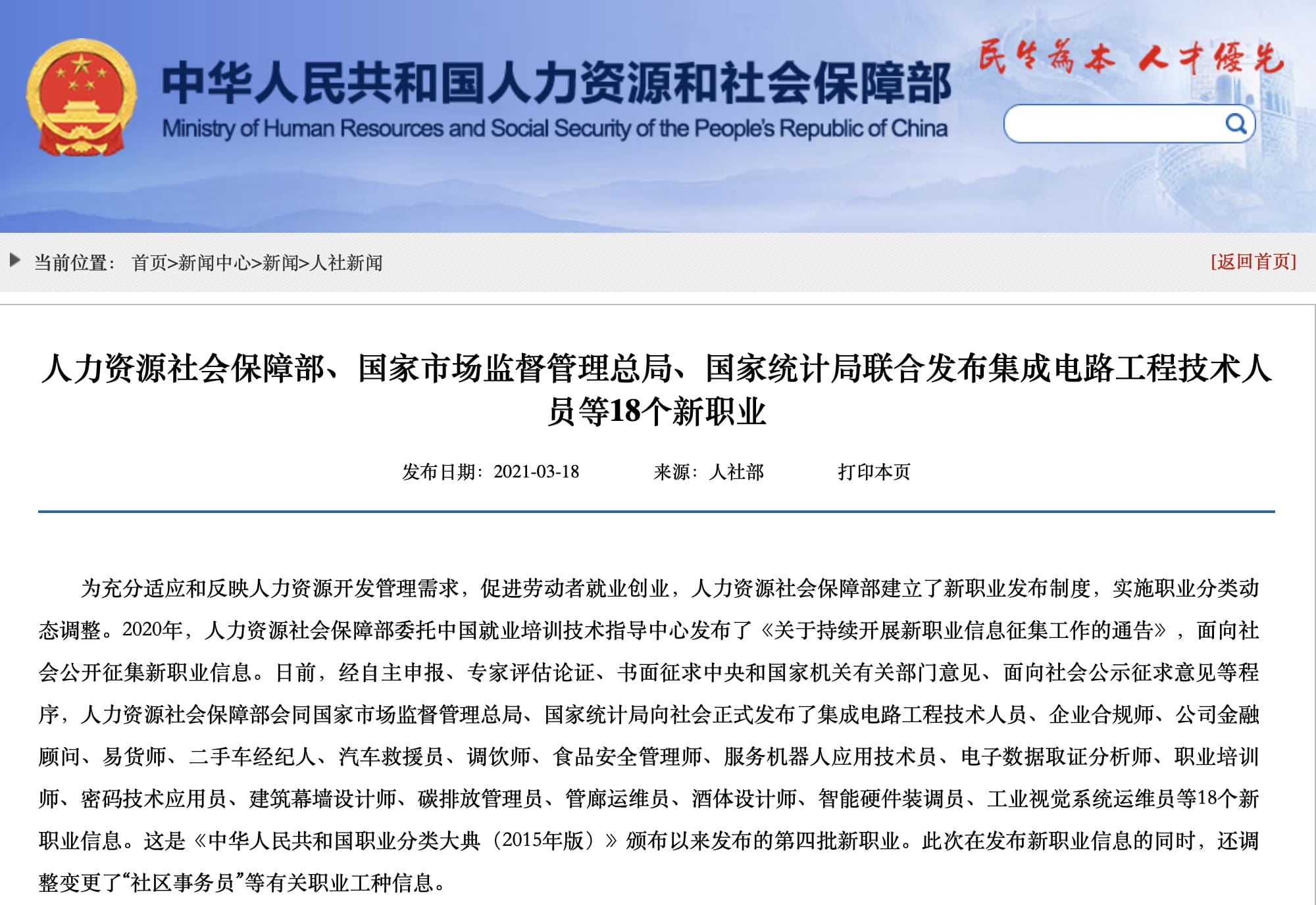 人力资源社会保障部等多部门联合发布企业合规师等18个新职业